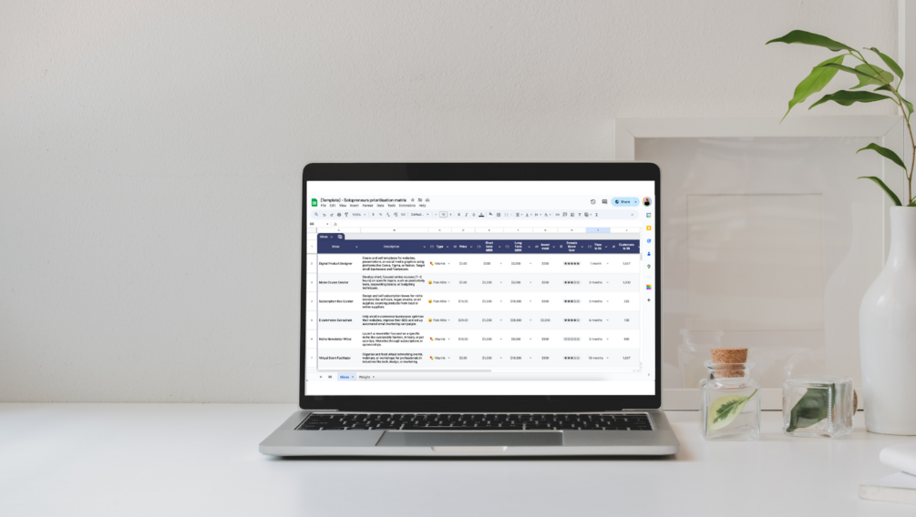 You will get a Google Sheet link with the Prioritisation Matrix for Solopreneurs